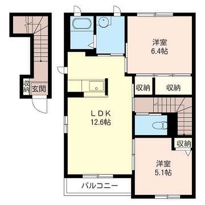 LDK12.6 洋室6.4 洋室5.1 ※1畳=1.62m2)