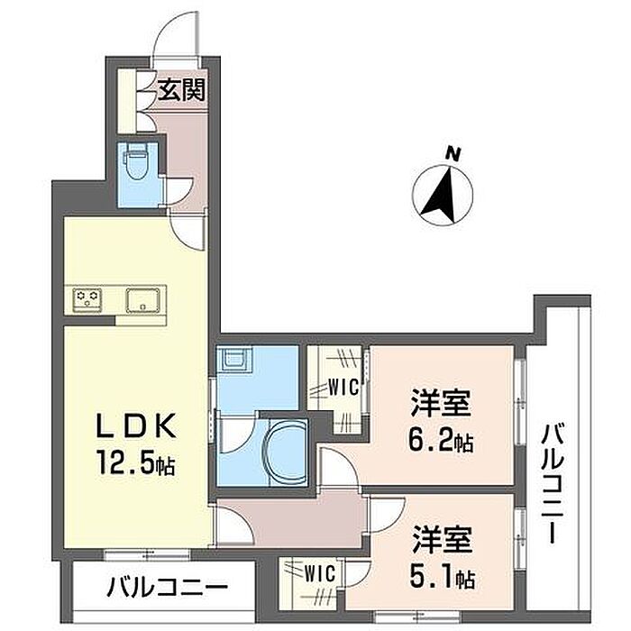 洋室6.2 洋室5.1 LDK12.5 ※1畳=1.62m2)