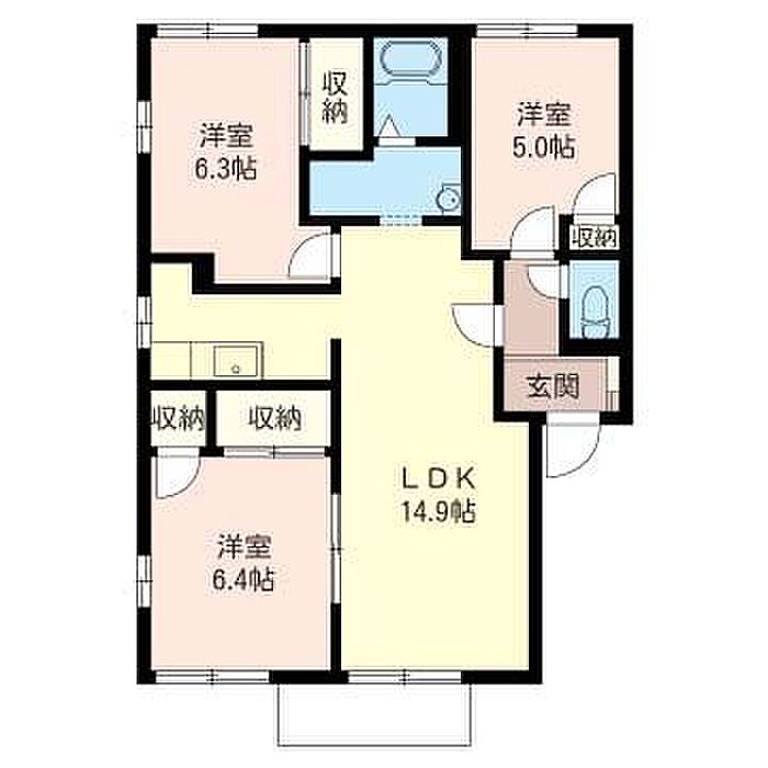 洋室6.3 洋室5 洋室6.4 LDK14.9 ※1畳=1.62m2)