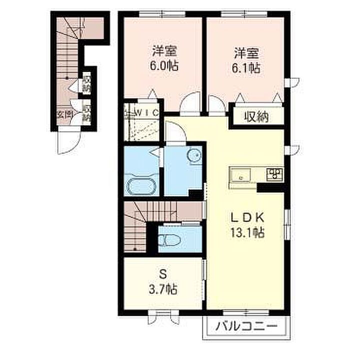 洋室6.1 洋室6 S3.7 LDK13.1 ※1畳=1.62m2)