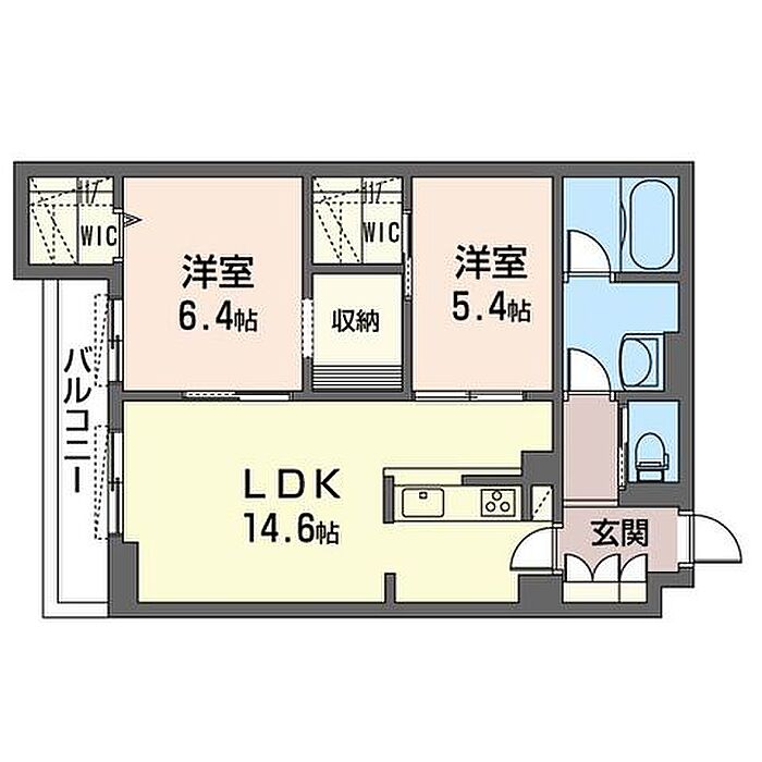 洋室6.4 洋室5.4 LDK14.6 ※1畳=1.62m2)