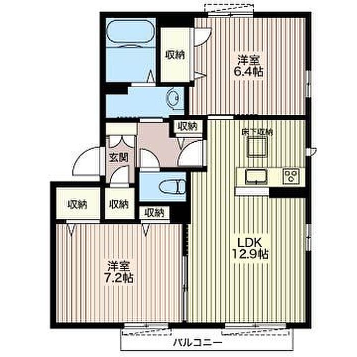 洋室7.2 洋室6.4 LDK12.9 ※1畳=1.62m2)