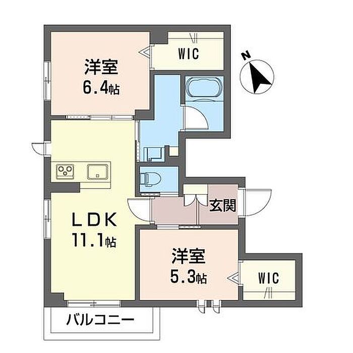 洋室6.4 洋室5.3 LDK11.1 ※1畳=1.62m2)