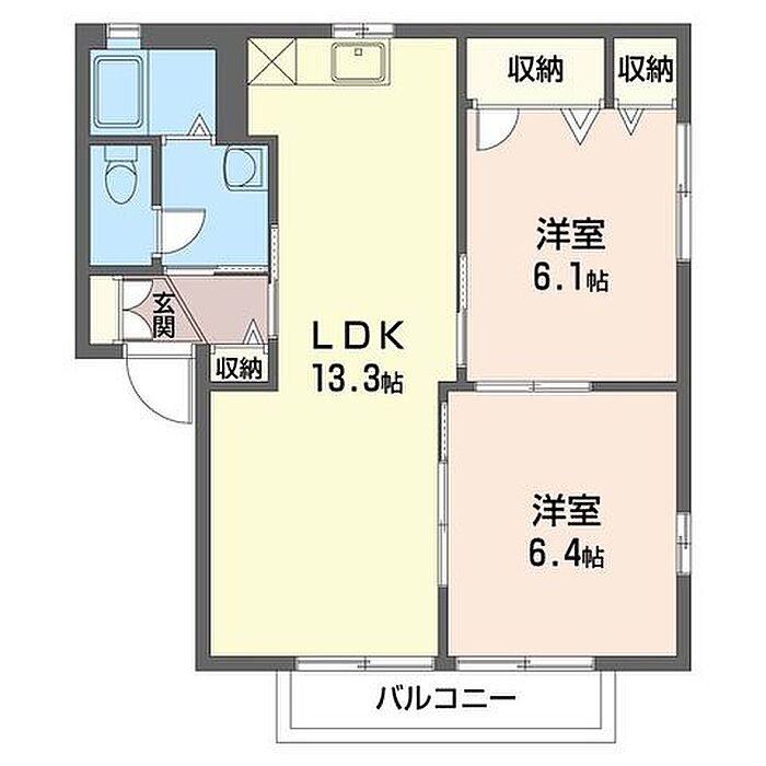 洋室6.4 LDK13.3 洋室6.1 ※1畳=1.62m2)