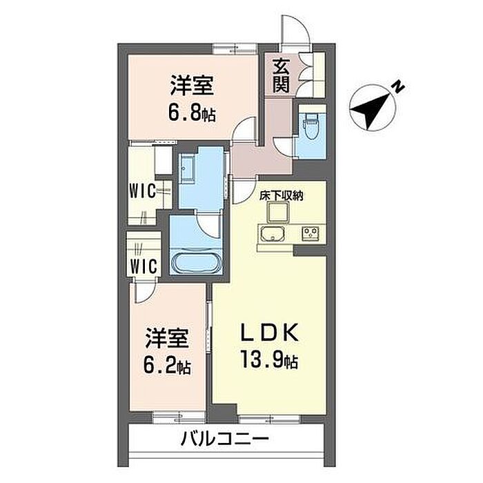 洋室6.8 洋室6.2 LDK13.9 ※1畳=1.62m2)