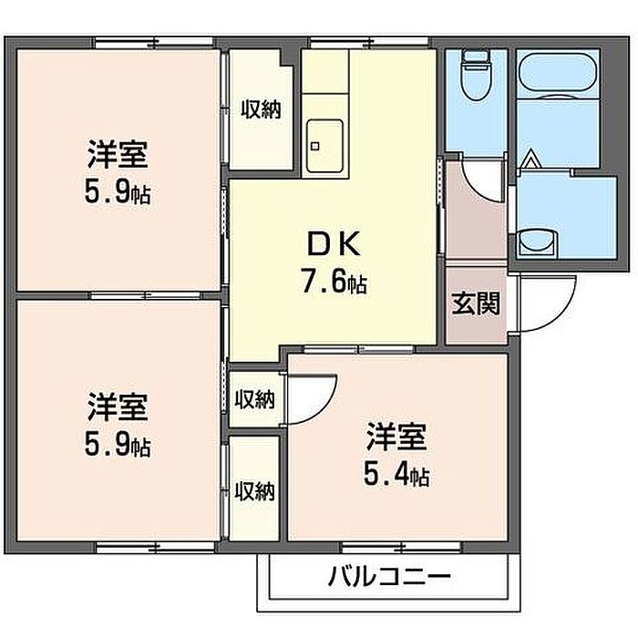 洋室5.4 洋室5.9 洋室5.9 DK7.6 ※1畳=1.62m2)