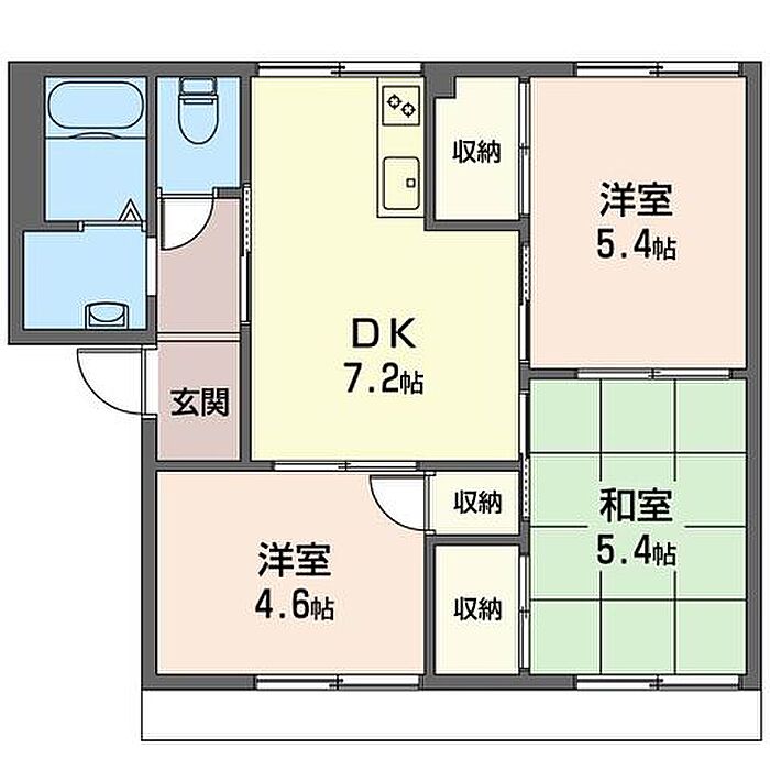 洋室4.6 洋室5.4 和室5.4 DK7.2 ※1畳=1.62m2)