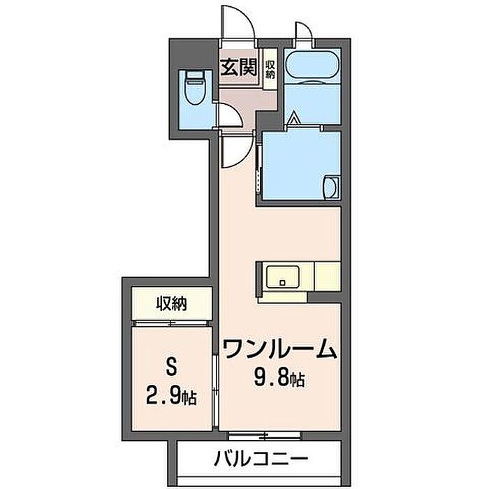 ワンルーム9.8 S2.9 ※1畳=1.62m2)