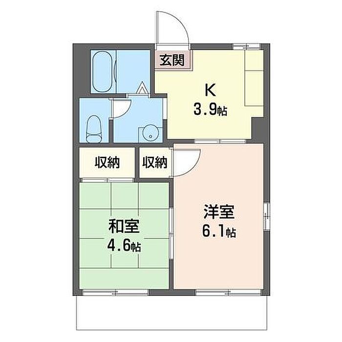 和室4.6 洋室6.1 K3.9 ※1畳=1.62m2)