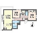 洋室6.1 洋室5.6 LDK14.6 ※1畳=1.62m2)