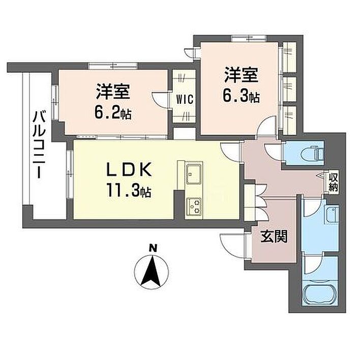 洋室6.3 洋室6.2 LDK11.3 ※1畳=1.62m2)