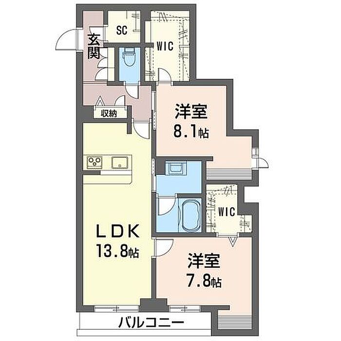 洋室7.8 洋室7.7 LDK13.8 ※1畳=1.62m2)