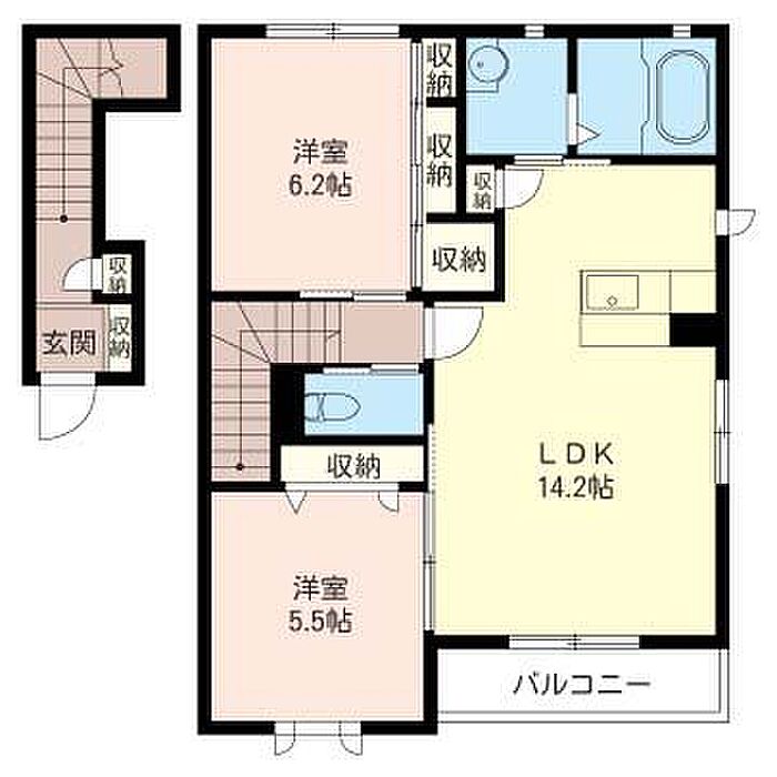 LDK14.2 洋室6.2 洋室5.5 ※1畳=1.62m2)
