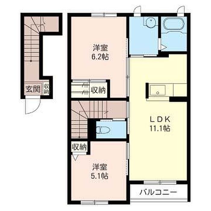 洋室6.2 洋室5.1 LDK11.1 ※1畳=1.62m2)