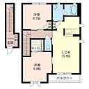 洋室6.9 洋室6.1 LDK13.1 ※1畳=1.62m2)