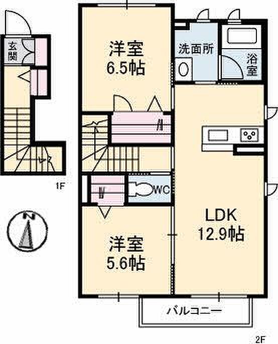 LDK12.9 洋室6.5 洋室5.6 ※1畳=1.62m2)