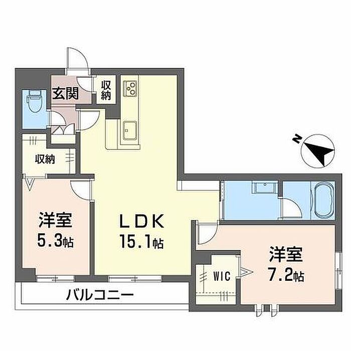 洋室7.2 洋室5.3 LDK15.1 ※1畳=1.62m2)