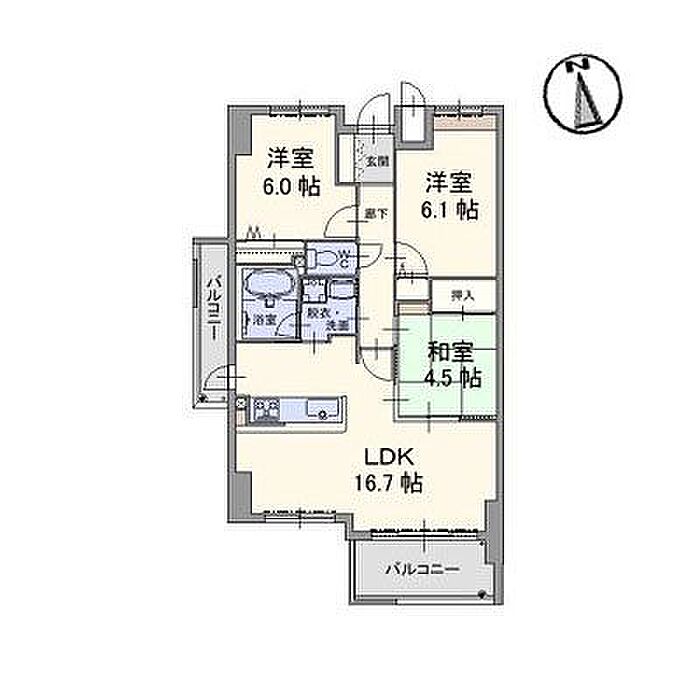 LDK16.7 洋室6.1 洋室6 和室4.5 ※1畳=1.62m2)