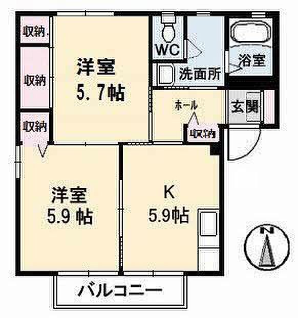 K5.9 洋室5.9 和室5.7 ※1畳=1.62m2)