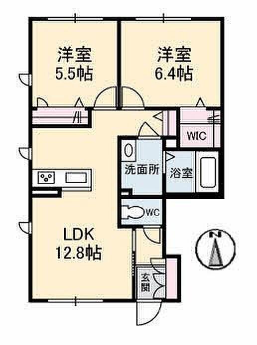 LDK12.8 洋室6.4 洋室5.5 ※1畳=1.62m2)
