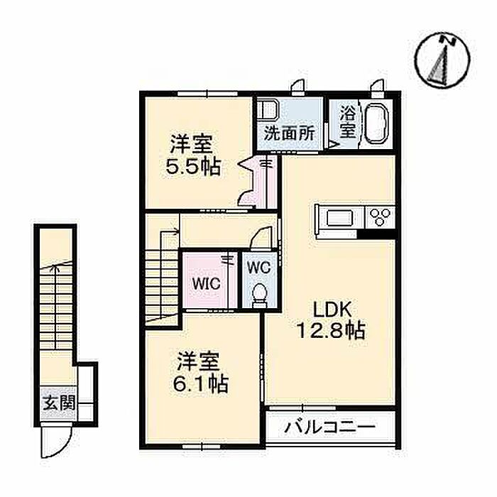 LDK12.8 洋室6.1 洋室5.5 ※1畳=1.62m2)