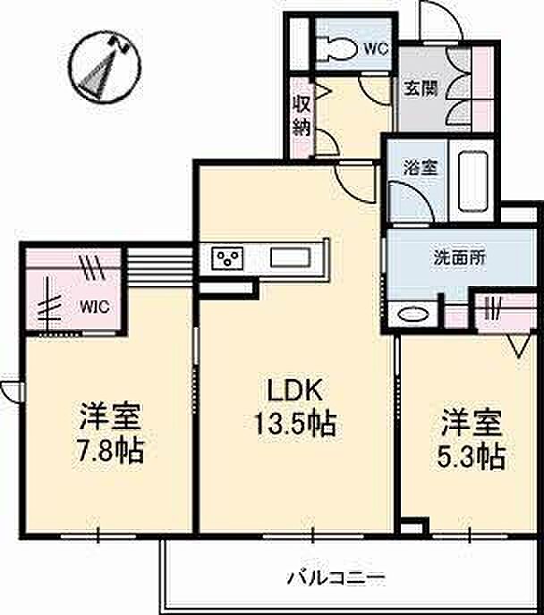 LDK13.5 洋室7.8 洋室5.3 ※1畳=1.62m2)