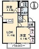 LDK11.4 洋室6.1 洋室4.6 ※1畳=1.62m2)