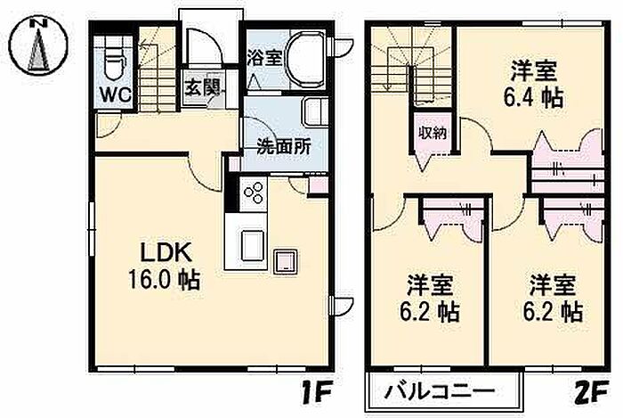 LDK16 洋室6.4 洋室6.2 洋室6.2 ※1畳=1.62m2)