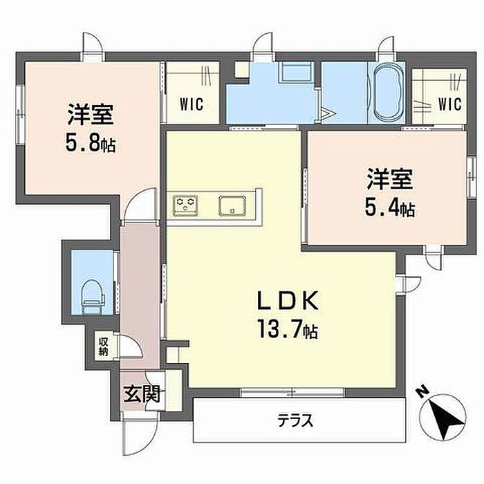 LDK13.7 洋室5.8 洋室5.4 ※1畳=1.62m2)