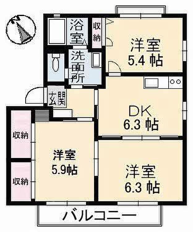 DK6.3 洋室5.9 洋室6.3 洋室5.4 ※1畳=1.62m2)