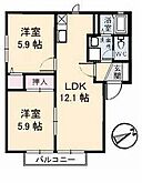 LDK12.1 洋室5.9 和室5.9 ※1畳=1.62m2)