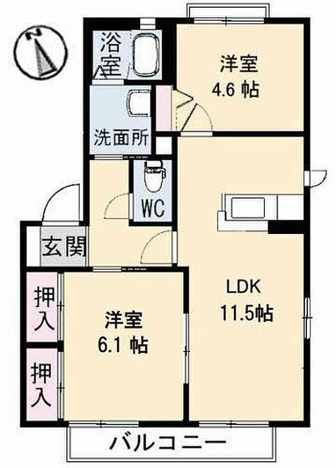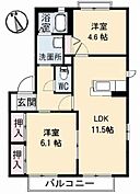 LDK11.5 洋室4.6 洋室6.1 ※1畳=1.62m2)