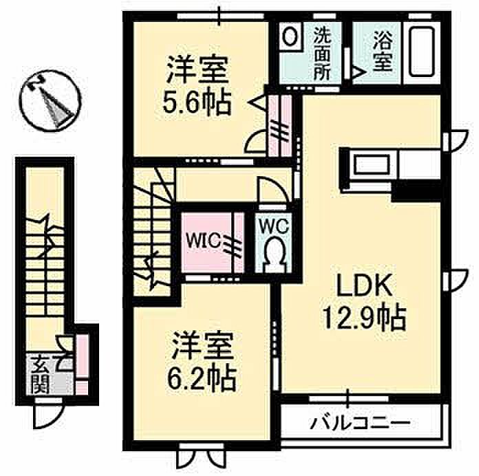 LDK12.9 洋室6.2 洋室5.6 ※1畳=1.62m2)