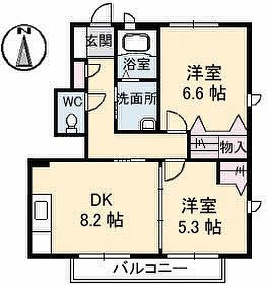 モンプレジール III棟 B0108 2DK/1階