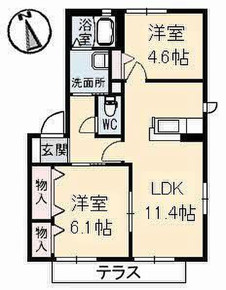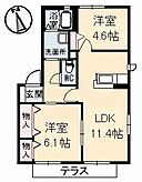 LDK11.4 洋室4.6 洋室6.1 ※1畳=1.62m2)