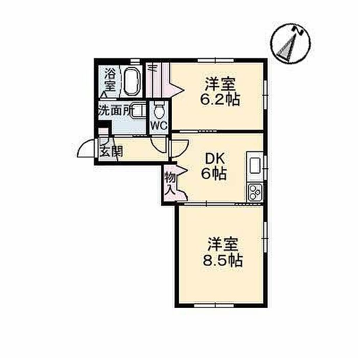 DK6 洋室8.5 洋室6.2 ※1畳=1.62m2)