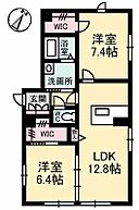 LDK12.8 洋室7.4 洋室6.4 ※1畳=1.62m2)