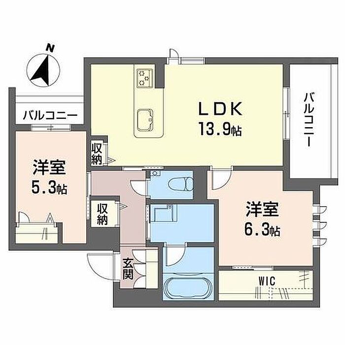 洋室6.3 洋室5.3 LDK13.9 ※1畳=1.62m2)