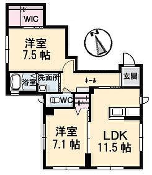 洋室7.1 洋室7.5 LDK11.5 ※1畳=1.62m2)