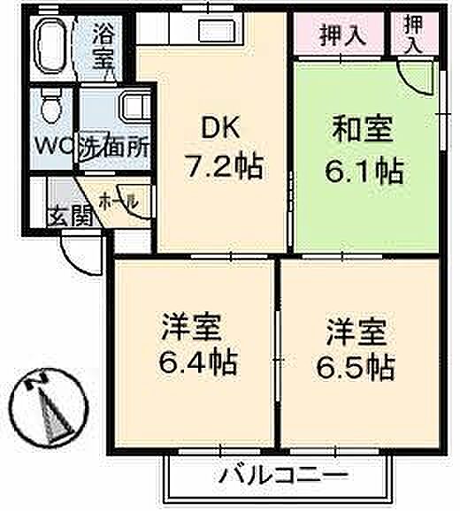 DK7.2 和室6.1 洋室6.4 洋室6.5 ※1畳=1.62m2)