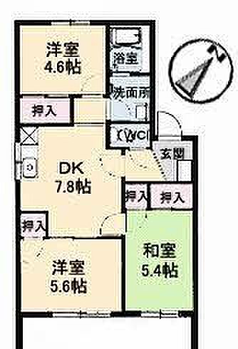DK7.8 洋室5.6 洋室4.6 和室5.4 ※1畳=1.62m2)