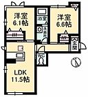 洋室6.6 洋室6.1 LDK11.5 ※1畳=1.62m2)