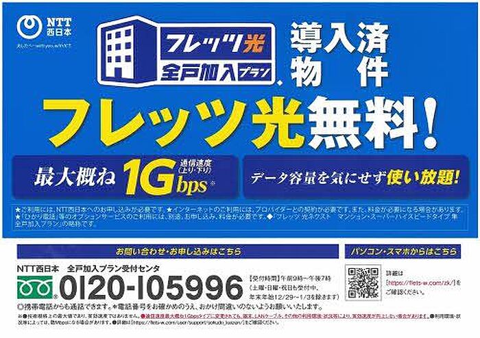 全室角部屋、2面バルコニー設計、無料インターネット付き(フレッツ光1Gbps)
