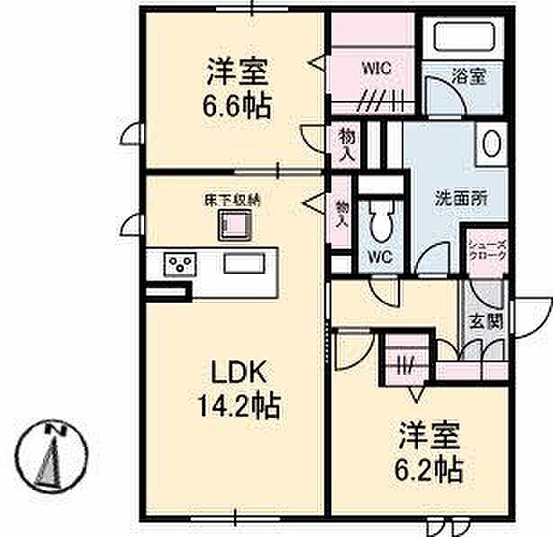 LDK14.2 洋室6.2 洋室6.6 ※1畳=1.62m2)