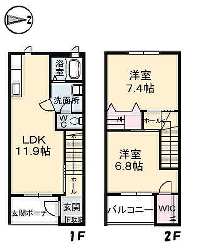 LDK11.9 洋室7.4 洋室6.8 ※1畳=1.62m2)