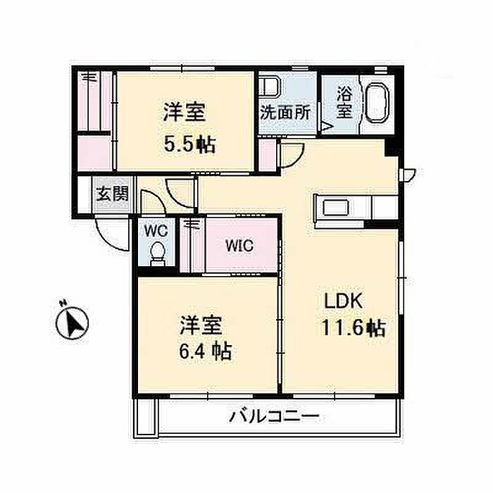 LDK11.6 洋室6.4 洋室5.5 ※1畳=1.62m2)