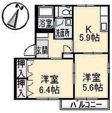 K5.9 洋室6.4 洋室5.6 ※1畳=1.62m2)