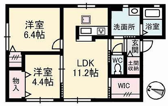 LDK11.2 洋室6.4 洋室4.4 ※1畳=1.62m2)