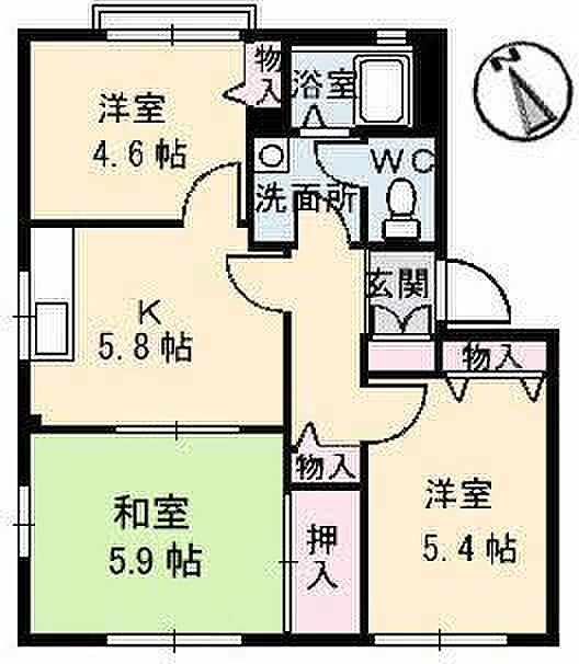 K5.8 和室5.9 洋室5.4 洋室4.6 ※1畳=1.62m2)