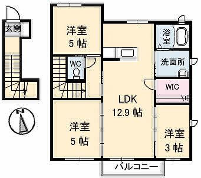 LDK12.9 洋室5 洋室5 洋室3 ※1畳=1.62m2)